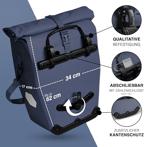Valkental® Große & wasserdichte Gepäckträgertasche [28L] Abschließbare Befestigung [PVC frei] Fahrradtasche für Gepäckträger mit großen Reflektoren - Inkl. Tragegurt & Innenfächer - Geprüfte Qualität