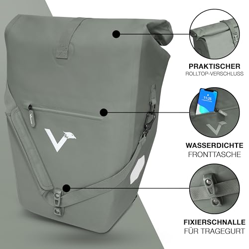 Valkental Fahrradtasche Gepäckträgertasche mit Umhängeschlauf, 2in1 wasserdicht, mit Rolltop Verschluss & Laptopfach 28L