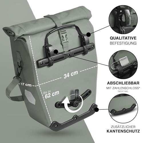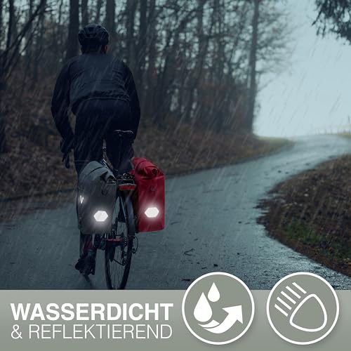 Valkental® Große & wasserdichte Gepäckträgertasche [28L] Abschließbare Befestigung [PVC frei] Fahrradtasche für Gepäckträger mit großen Reflektoren - Inkl. Tragegurt & Innenfächer - Geprüfte Qualität