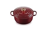 Le Creuset Signature Gusseisen-Bräter mit Deckel, Ø 20 cm, Rund, Für alle Herdarten und Induktion geeignet, Volumen: 2,4 l, 3,092 kg, Garnet, 21177209494441