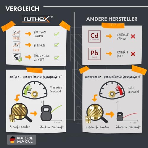 ruthex M6 Gewindeeinsatz RX-M6x12.7 Gewindebuchsen aus Messing 25 Stück
