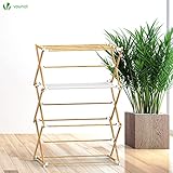 Vounot - Klappbarer Wäscheständer, ausziehbarer Turmwäscheständer, platzsparender Standtrockner mit 3 Ebenen, aus Metall, Holzoptik