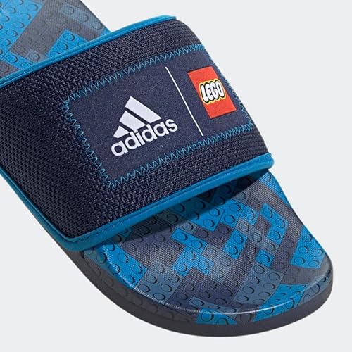 adidas Unisex Adilette Comfort Slides Sandal, Dark Blue/Chalk White/Blue Rush, 14 US Women