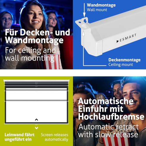 ESMART Professional MIROLO Rollo-Leinwand 217 cm Bild 198 x 124 cm (92") 16:10 | Heimkino Beamer Projektionsleinwand LCD LED