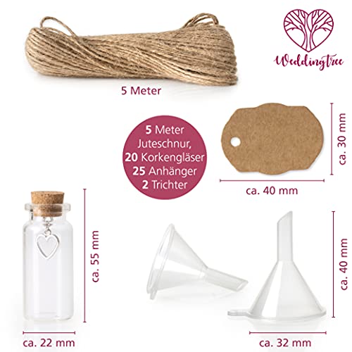 WeddingTree 20x Mini Glasflaschen mit Korken 11ml - Kleine Glasflaschen zum Befüllen - Reagenzglas mit Korken Glas für Hochzeit - Gewürzgläser klein - Mini Gläser mit Korken als Gastgeschenke Hochzeit