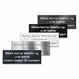 Metzler Edelstahl Briefkastenschild "Keine Werbung und keine kostenlosen Zeitungen" - Schwarz RAL9005 Pulverbeschichtet matt - Türschild mit selbstklebender Rückseite - Größe: 8,5 x 3 cm