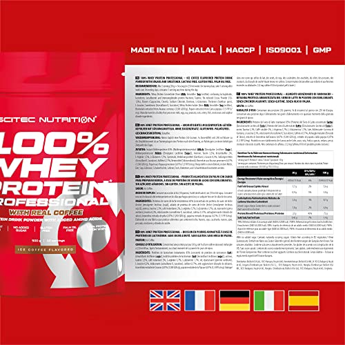 Scitec Nutrition 100% Whey Protein Professional - Angereichert mit zusätzlichen Aminosäuren und Verdauungsenzymen - Glutenfrei - Palmölfrei, 500 g, Eis Kaffee
