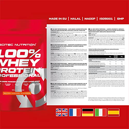 Scitec Nutrition 100% Whey Protein Professional - Angereichert mit zusätzlichen Aminosäuren und Verdauungsenzymen - Glutenfrei - Palmölfrei, 500 g, Salziges Karamell