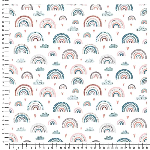 VmG-Store Baumwollstoff Meterware 140cm Breite Stoffe zum Nähen Nähstoff Kinderstoff für Kissen Babykleidung Kinderkleidung DIY (Regenbogen Pastell Weiß Bc018)