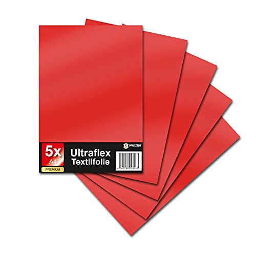 5er Set DIN A4 Ultraflex S Textilfolie Hellrot für Stoffe Kleidung