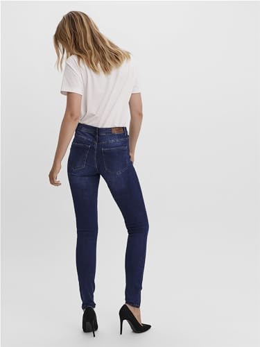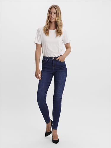 Skinny-fit-Jeans VERO MODA VMTANYA MR S PIPING, Damen, Gr. M (38), Länge 32, blau (dunkelblau denim), Denim/Jeans, Obermaterial: 69% Baumwolle, 25% Polyester, 3% Elasthan, 3% Viskose, Basic, skinny fit, Jeans