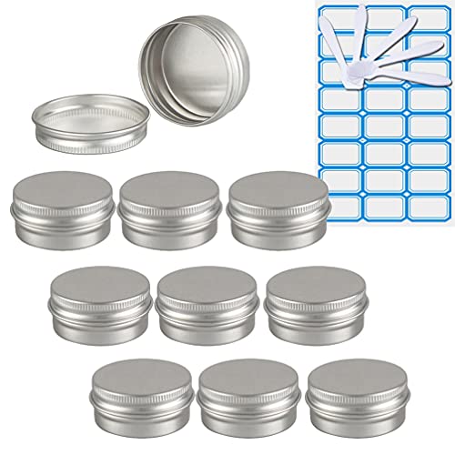 ZEOABSY 10 Stück Leere 15 ml Rund Silber Aluminium Tins mit Schraub-Deckel Schraubdose Cremedose Alu-Tiegel Dosen Aludose Blechdosen für Kosmetik Kerze Salben 5x Spatel, 1x Etikette