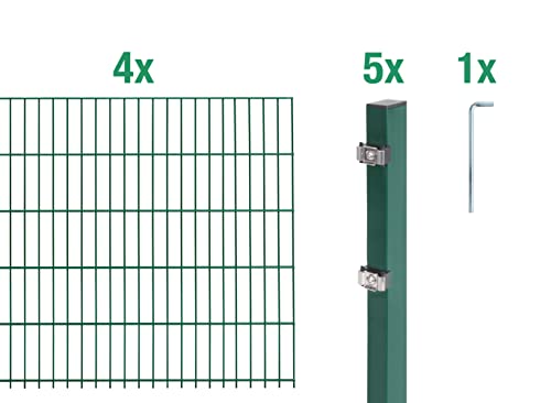 Alberts 650193 Doppelstabmattenzaun als 10 tlg. Zaun-Komplettset | verschiedene Längen und Höhen | kunststoffbeschichtet, grün | Höhe 120 cm | Länge 8 m