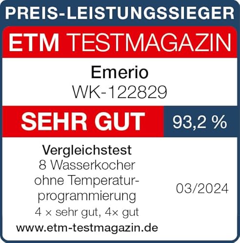 Emerio wk-122829 elektrischer wasserkocher 1,7 l 2200 w schwarz, edelstahl