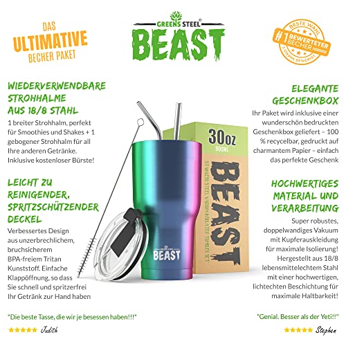 Greens Steel Beast Tumbler – 900 ml (30 oz), Regenbogen | Wiederverwendbarer Edelstahl, vakuumisolierter Becher | mit 2 Strohhalmen & Reinigungsbürste | Doppelwandiger Reise-Thermobecher