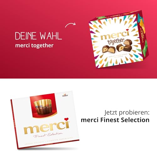 merci together – 1 x 175 g – Gefüllte Pralinen in fünf Sorten mit Edel-Vollmilchschokolade – Schokopralinen zum Teilen & Verschenken