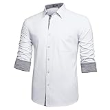 HISDERN Herren Hemd Regular Fit Formale Freizeithemden Herrenhemden Weiß Langarm Männer Hemd Klassisches Businesshemd mit Tasche,S