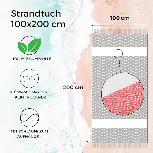 FLORA FURORA Strandtuch groß 100x200 cm: Baumwolle, leicht lang dünn kompakt - P