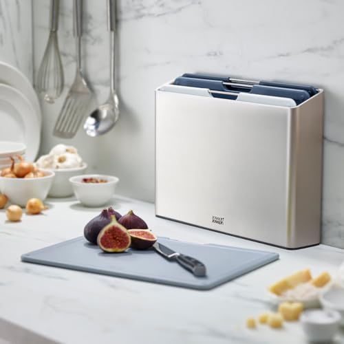 Joseph Joseph Folio 4 Stück Schneidebrett-Set, schlanker Halter für organisierte Aufbewahrung, Groß – Salbeigrün, Grün/Silber, 35.7cm x 26.2cm - Groß, 35.7cm X 26.2cm - Große