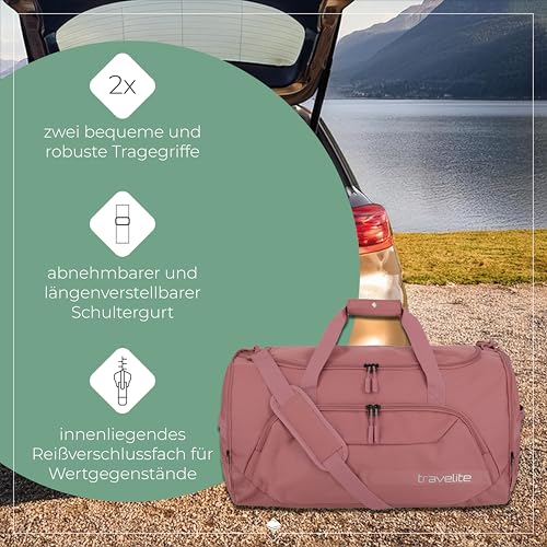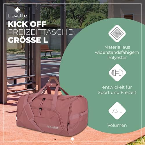 Reisetasche TRAVELITE KICK OFF, verschiedene Größen und Farben, Gr. B/H/T: 60cm x 34cm x 36cm, rosa (rose), Polyester, unifarben, Taschen, Reisegepäck Sporttasche Freizeittasche mit Aufsteckfunktion