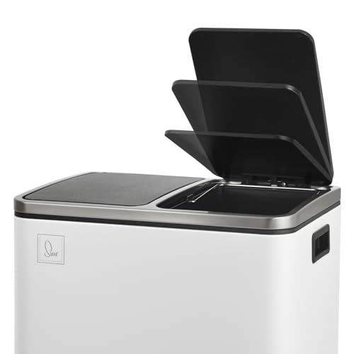 SVITA TM2X30 Treteimer 60 Liter Abfalleimer Mülleimer Design Mülltrennung Papierkorb Küchen-Ordnung Trennsystem herausnehmbare Inneneimer mit Henkel mit Schließdämpfer Weiß