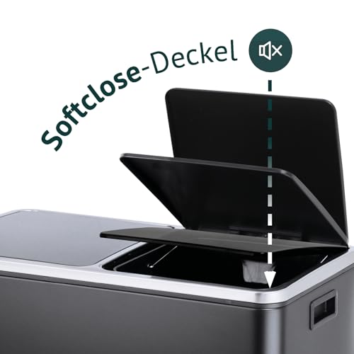 SVITA TM2X30 Treteimer 60 Liter Abfalleimer Mülleimer Design Mülltrennung Papierkorb Küchen-Ordnung Trennsystem herausnehmbare Inneneimer mit Henkel mit Schließdämpfer Schwarz