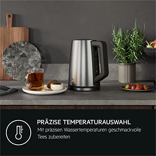 AEG Wasserkocher Deli 5, 2400 Watt, 5 Einstellbare Temperaturstufen, 1,7 l, 3-fache Automatische Sicherheitsabschaltung, Anti-Tropf- und Warmhaltefunktion, Einhand-Deckelöffnung, Edelstahl, K5-1-6ST
