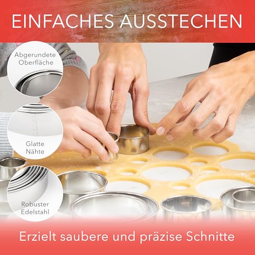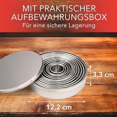 AVANA Ausstechform Ausstecher Ringe Keksformen Plätzchen Speiseringe Cookie Cutter Rund, Edelstahl, (12 Stück), Set Ausstechformen mit Aufbewahrungsbox