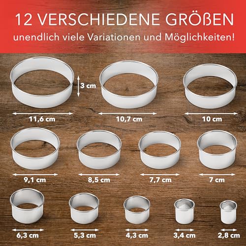 AVANA Edelstahl Ausstechformen 12 Stück Keksformen Ausstecher Speiseringe Set