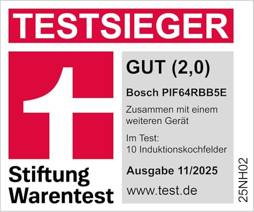 Bosch PIF64RBB5E, Stiftung Warentest Testsieger*, Serie 4 Induktionskochfeld, autarkes Glaskeramik-Kochfeld 60 cm breit, TouchSelect, Bräterzone, PowerBoost, ReStart, Umlaufender Rahmen, Schwarz