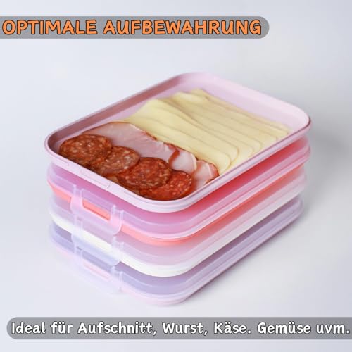 Engelland 3er Set Aufschnitt-Dosen mit integrierter Servierplatte, Frischhaltedose, Aufbewahrungsbox, Lebensmittelbehälter, Aufschnitt-Box, stapelbar, BPA-frei, Küchenbedarf, Kunststoff, Bunt