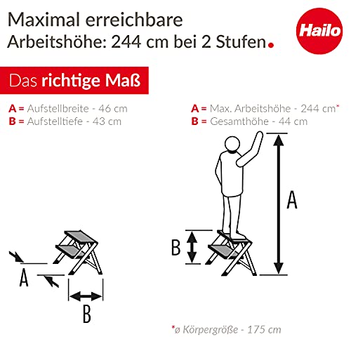 Hailo MK80 Mini Comfort Klapptritt 2 Stufen Tritt Leiter Hocker Trttleiter