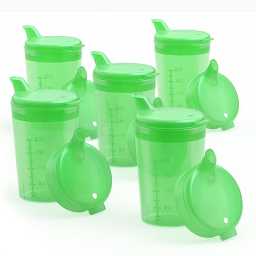 Horn Medical 5er Pack Erwachsenen Trinkhilfen 250ml Schnabelbecher PLUS 5 Deckel für Flüssigkeiten & 5 Deckel für Brei/Mus - Farbe wählbar (Bunt)