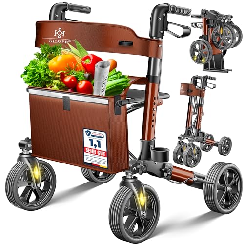 KESSER® Leichtgewicht Rollator faltbar mit Sitz, Griff, Tasche, schmal für Senioren Wohnung, Klappbar, Höhenverstellbar, Reflektoren All Gelände Reifen Indoor-& Outdoor, Gehhilfe, Laufhilfe