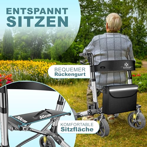KESSER Rollator, faltbar Laufhilfe Senioren Gehhilfe mit Sitz & Tasche höhenverstellbar
