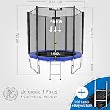 KINETIC SPORTS Trampolin Outdoor Salto Plus Ø 183/244/305/366/400/430/490 cm - Komplett-Set für Kinder, USA Sprungtuch, Netz, Randpolster, Leiter - bis zu 160kg Blau-2 Ø 183 cm Ø 183 cm, Blau-2