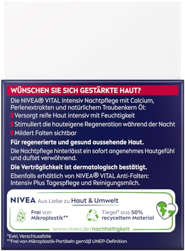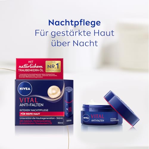 NIVEA VITAL Anti-Falten Intensiv Nachtpflege für reife Haut, Gesichtspflege mit Calcium, Perlenextrakten & natürlichem Traubenkern Öl, Nachtcreme zur Unterstützung der Hautregeneration (50 ml)