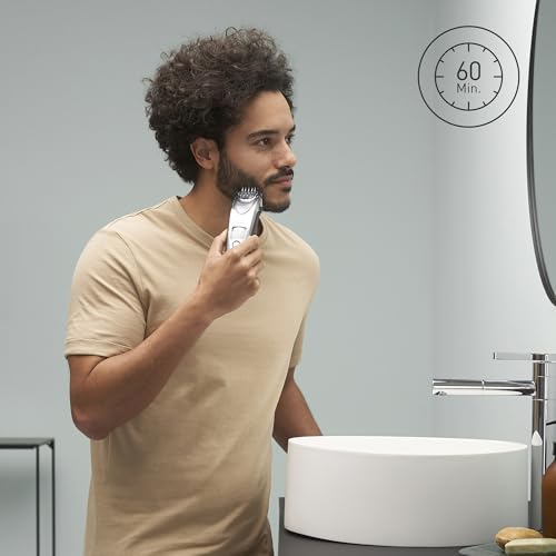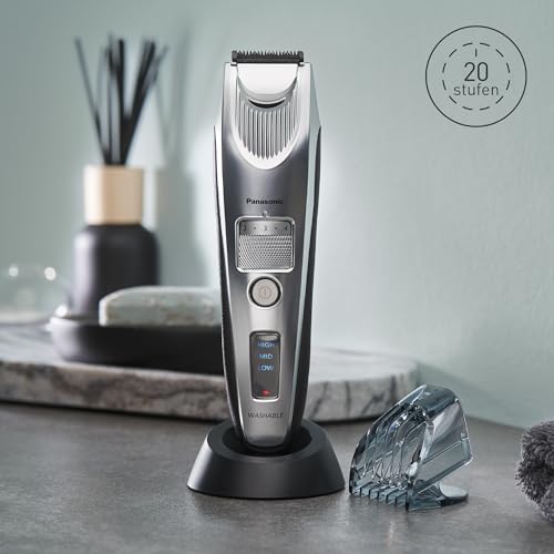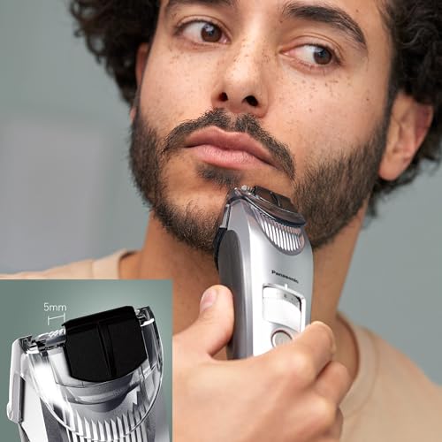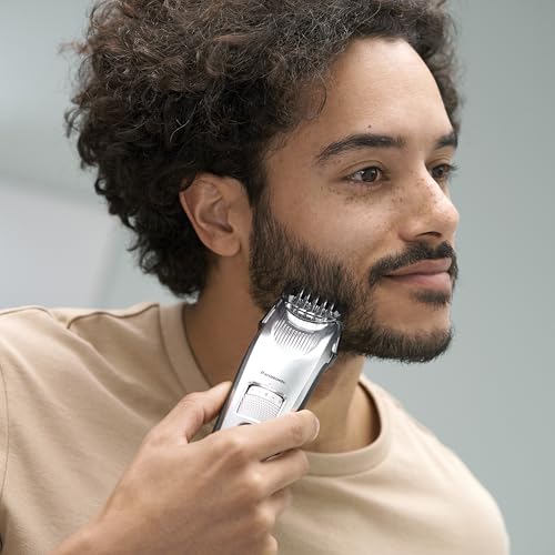 Panasonic ER-SB60-S803 Bartschneider für Männer, tragbare, wasserdichte Haarschneidemaschine, 20 Längen, 2 Aufsätze, Präzisions-Trimmer, kabelloser & kabelgebundener Betrieb, Ladestation, Silber
