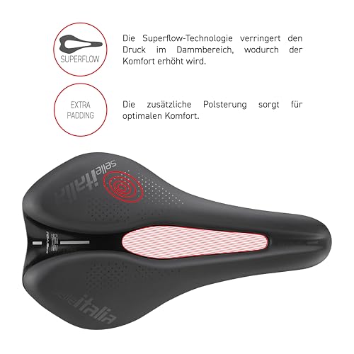 Selle Italia Novus Boost EVO Gravel TM Superflow – Gravel-Fahrradsattel, extra gepolstert, Superflow Aussparung, Mangan Rahmen – Größe L3, Schwarz