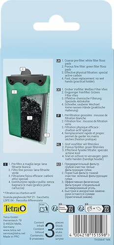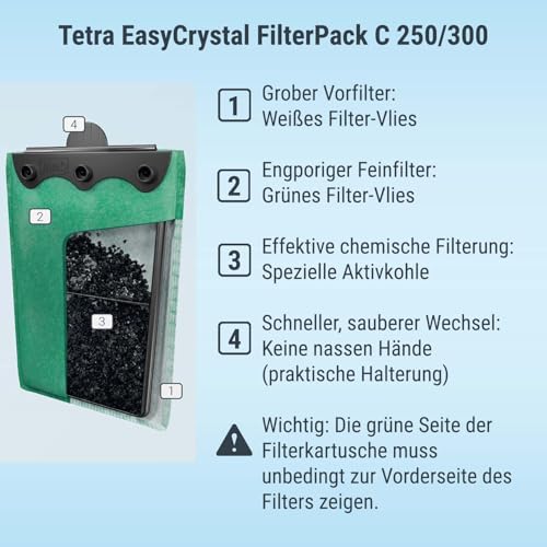 Tetra EasyCrystal Filter Pack C250/300 Filtermaterial mit Aktiv-Kohle, Filterpads für EasyCrystal Innenfilter, geeignet für Aquarien von 15-60 Liter, 3 Stück, grün