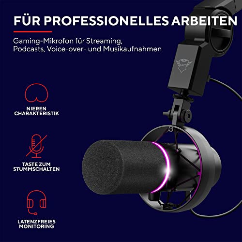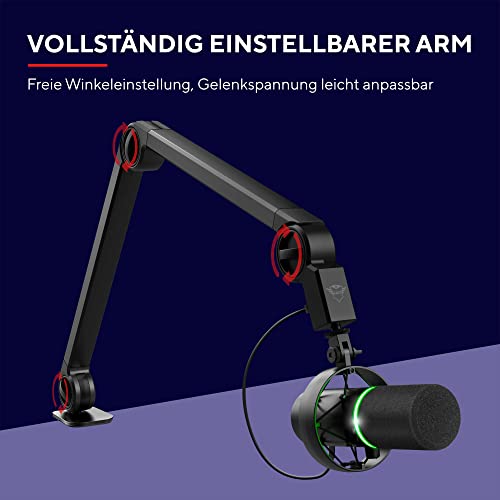 Trust Gaming GXT 255Plus Onyx Professionelles Mikrofon mit Arm, Nierencharakteristik, Popfilter, USB, LED, für Aufnahme, Streaming, Podcast, Broadcasting - Schwarz