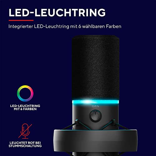 Trust Gaming GXT 255+ Onyx – USB-Mikrofon mit Arm, Nierencharakteristik, LED