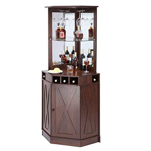 VEVOR Industrieller Eck-Barschrank, Weintisch für Spirituosen und Gläser, Sideboard-Buffetschrank mit Glashalter, Freistehender Kaffee-Barschrank aus Bauernholz für Wohnzimmer, Hausbar, Walnussholz