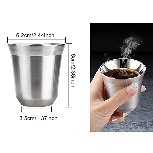 2 Stücke Edelstahltasse Doppelwandig Edelstahl kaffeetassen 80 ml Beche Set E...