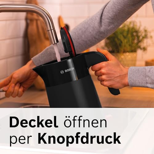 Bosch kabelloser Wasserkocher MyMoment TWK2M163, Abschaltautomatik, Überhitzungsschutz, Tassenanzeige, entnehmbarer Kalkfilter, Trockengehschutz, Dampfstopp-Automatik, 1,7 L, 2400 W, Schwarz matt