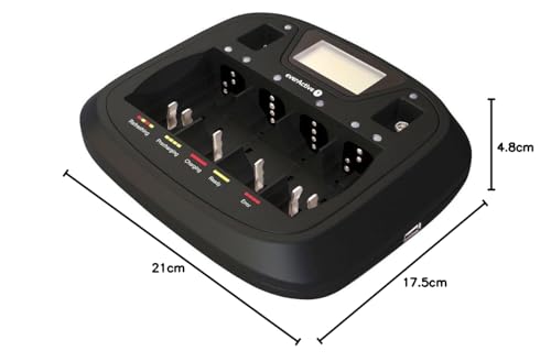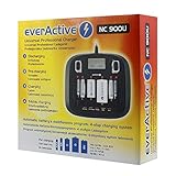 everActive Ladegerät für 8 Akkus AAA AA C D 9V, universal und schnell, vollautomatisch, LCD mit prozentualen Batteriestandsanzeiger, Modell: NC-900U
