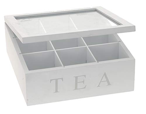 mucplants Teebox aus Holz in Weiß mit 9 Fächern Teekasten Teebeutelbox Teekiste