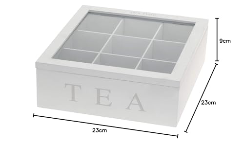 Teebox aus Holz mit 9 Fächern Weiß Teekasten Teebeutelbox Teekiste Teedose
