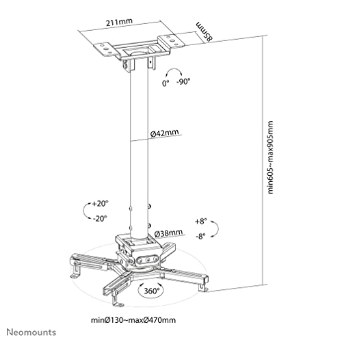 Neomounts Projector Ceiling Mount height adjustable 60-90 Deckenhalterung (CL25-540BL1)