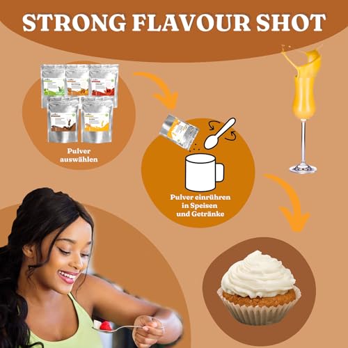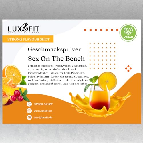Luxofit STRONG FLAVOUR SHOT Kalorienarmes Geschmackspulver vielseitig einsetzbar für Lebensmittel, Vegan, Zuckerreduziert, Geschmacksvielfalt, Aromatisches Pulver (Sex on the Beach)